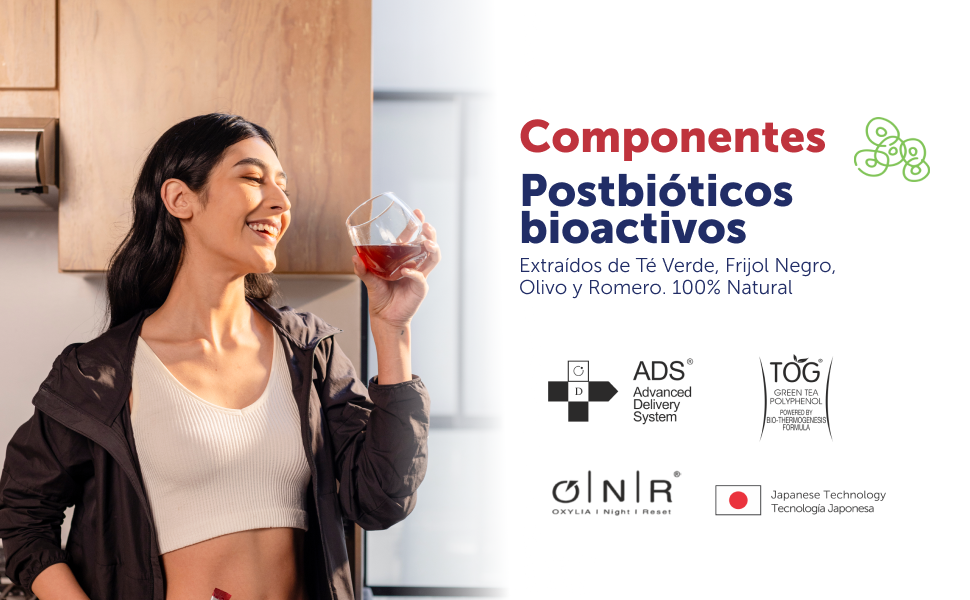 Ingredientes principales: Postbióticos bioactivos extraídos del Olivo, Romero y Espirulina azul.