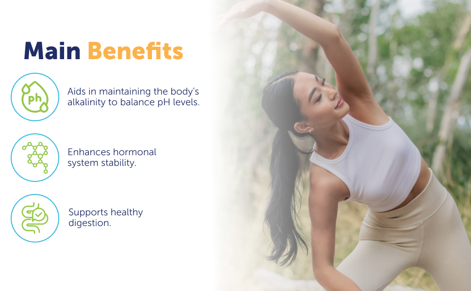 - Aids in maintaining the body’s alkalinity to balance pH levels.